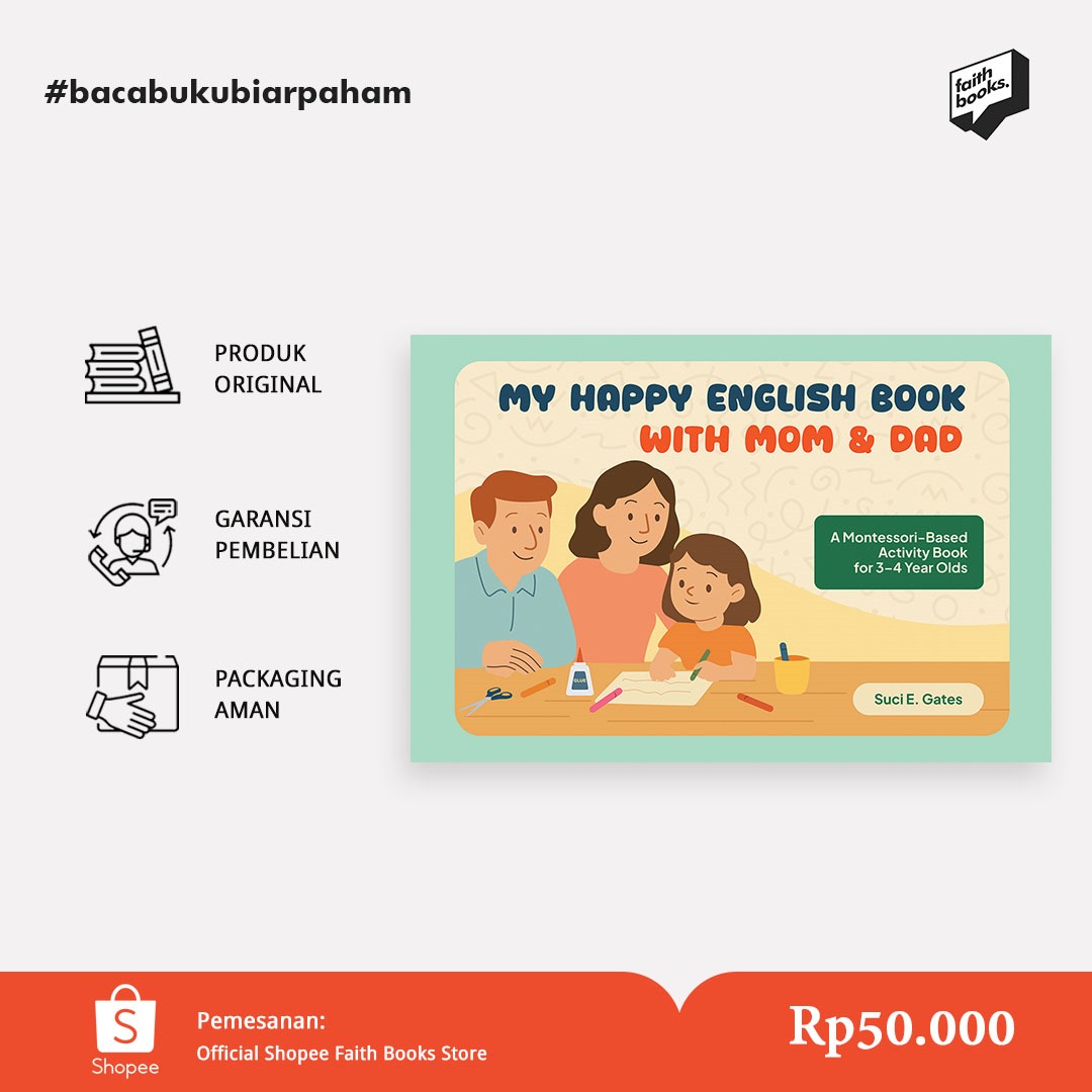 My Happy English Book with Mom & Dad 28 hlm; 21 x 29,7 cmCetakan Pertama, Juli 2025ISBN: (masih dalam proses) Penulis : Suci E. GatesPenyunting : Suci E. GatesTata Letak : KangfatihhDesain Cover : Ayu LestariPenyelaras Aksara : Redaksi Faith BooksDiterbitkan Oleh: Penerbit Faith Books Harga: Rp50.000 Sinopsis: Learning English is more fun when it’s […]